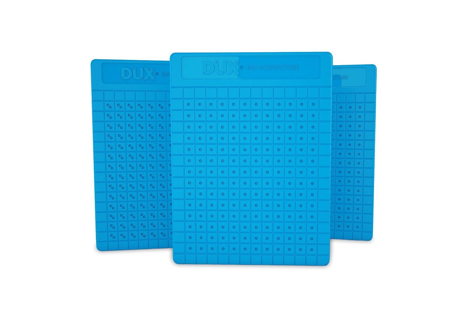 Esse produto exclusivo da Dux foi projetado e testado por profissionais experientes e consagrados. Unindo design e precisão, o material é indicado para uso exclusivo em auriculoterapia. Com baixo custo e alta praticidade, a placa possui duas faces: de um lado é possível utilizar esparadrapos com uma ou duas sementes; no outro, esparadrapos com uma semente. Além disso, a placa Dux tem uma superfície antiaderente, garantindo a durabilidade da cola do esparadrapo. Em suas cavidades é possível acomodar sementes de até 2,1mm e cada linha guia tem a profundidade ideal para o corte preciso e seguro com o estilete.